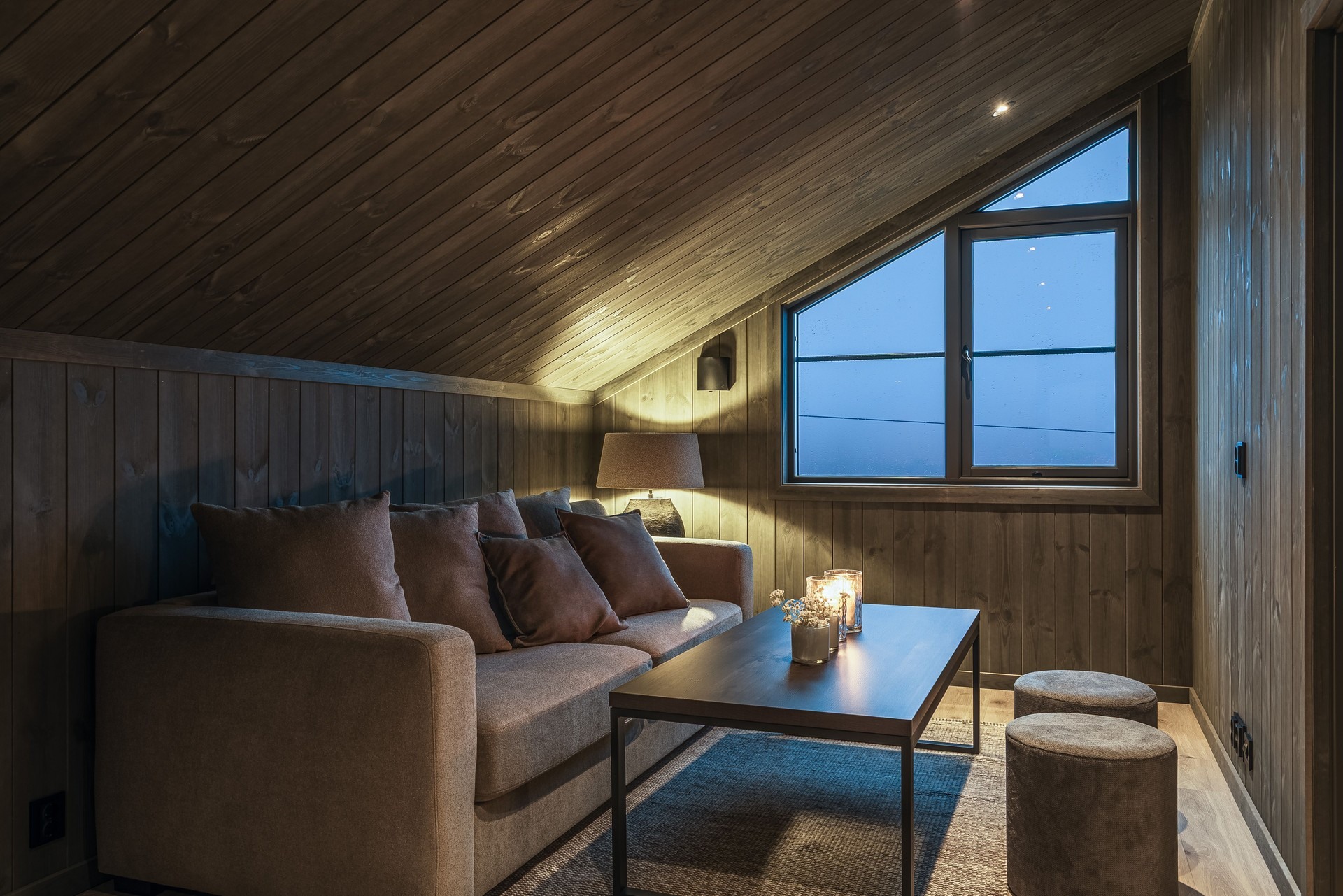 Lykkeglimt L med oppstue er en av våra mest exklusiva modeller. Stugan er utformad för att ge maximal boendekomfort med en uppdelning av vardagsrum/köksdel och en separat soverumsavdelning. Modellen ustrålar kvalitet, exlusivitet och mervärde. Stugan har imponerande takhöjd och stugan kjännetecknas av en solid konstruktion och påkostade material i viktiga delar av byggnaden. Stugan finns også i modellen Lykkeglimt L med 2. våning där knäväggarne er imponerande ca. 1,90 m.